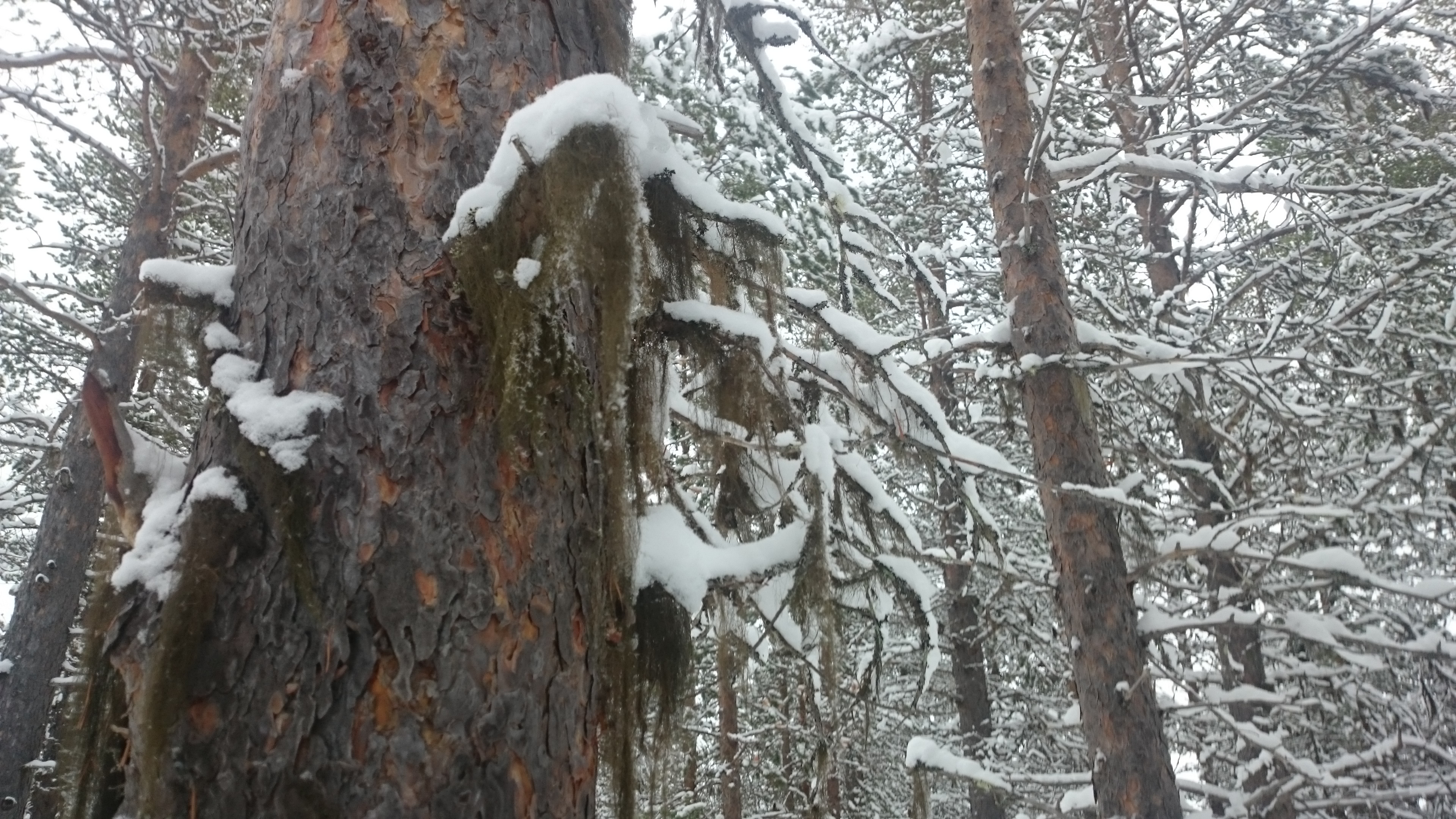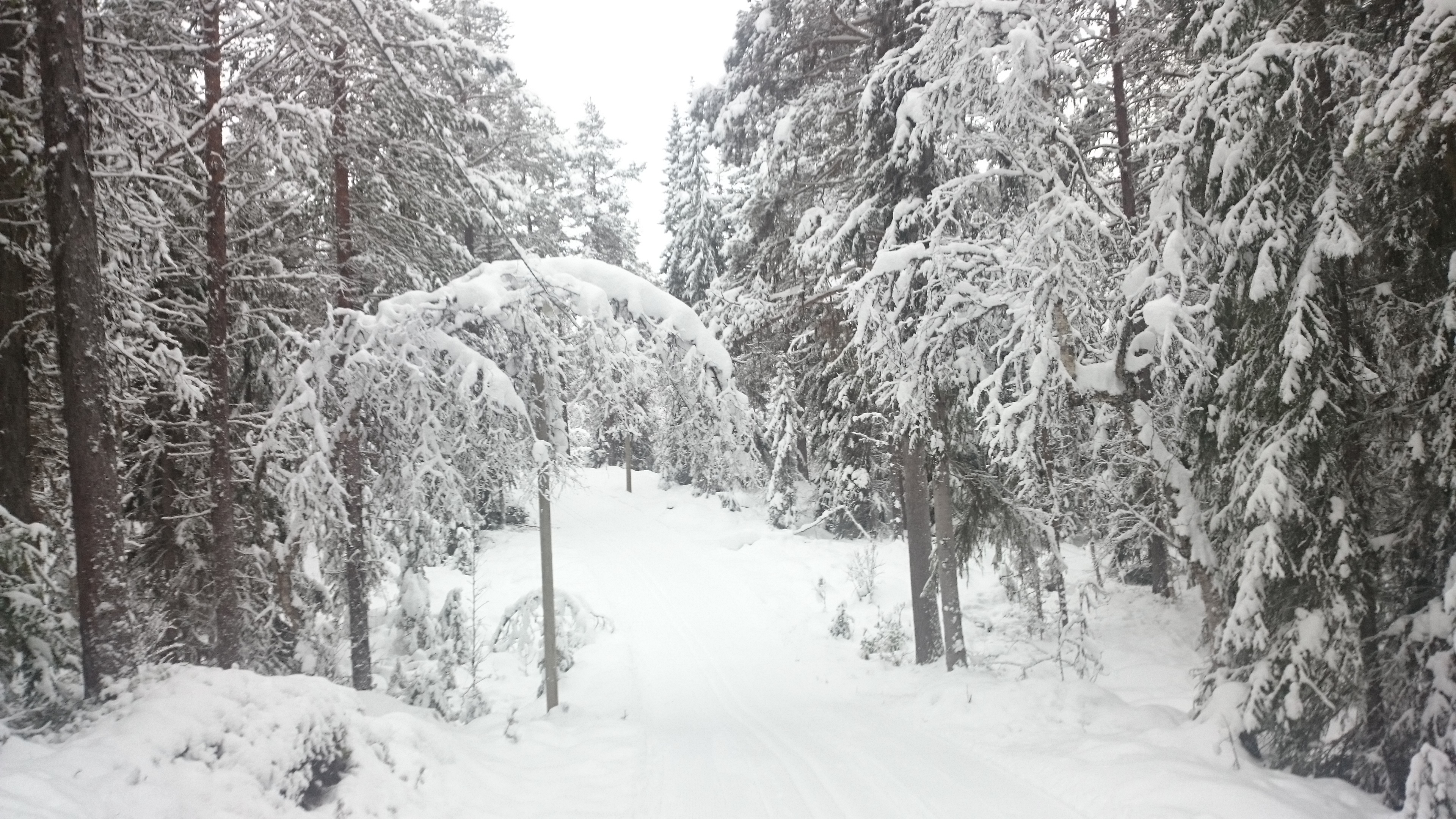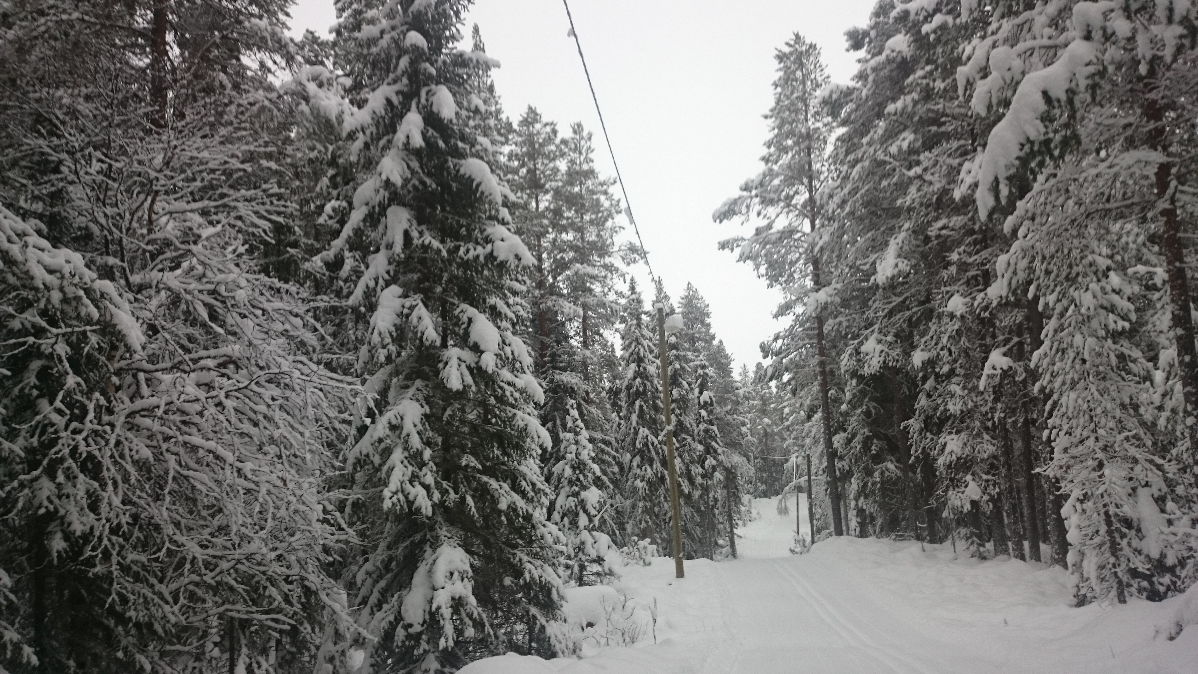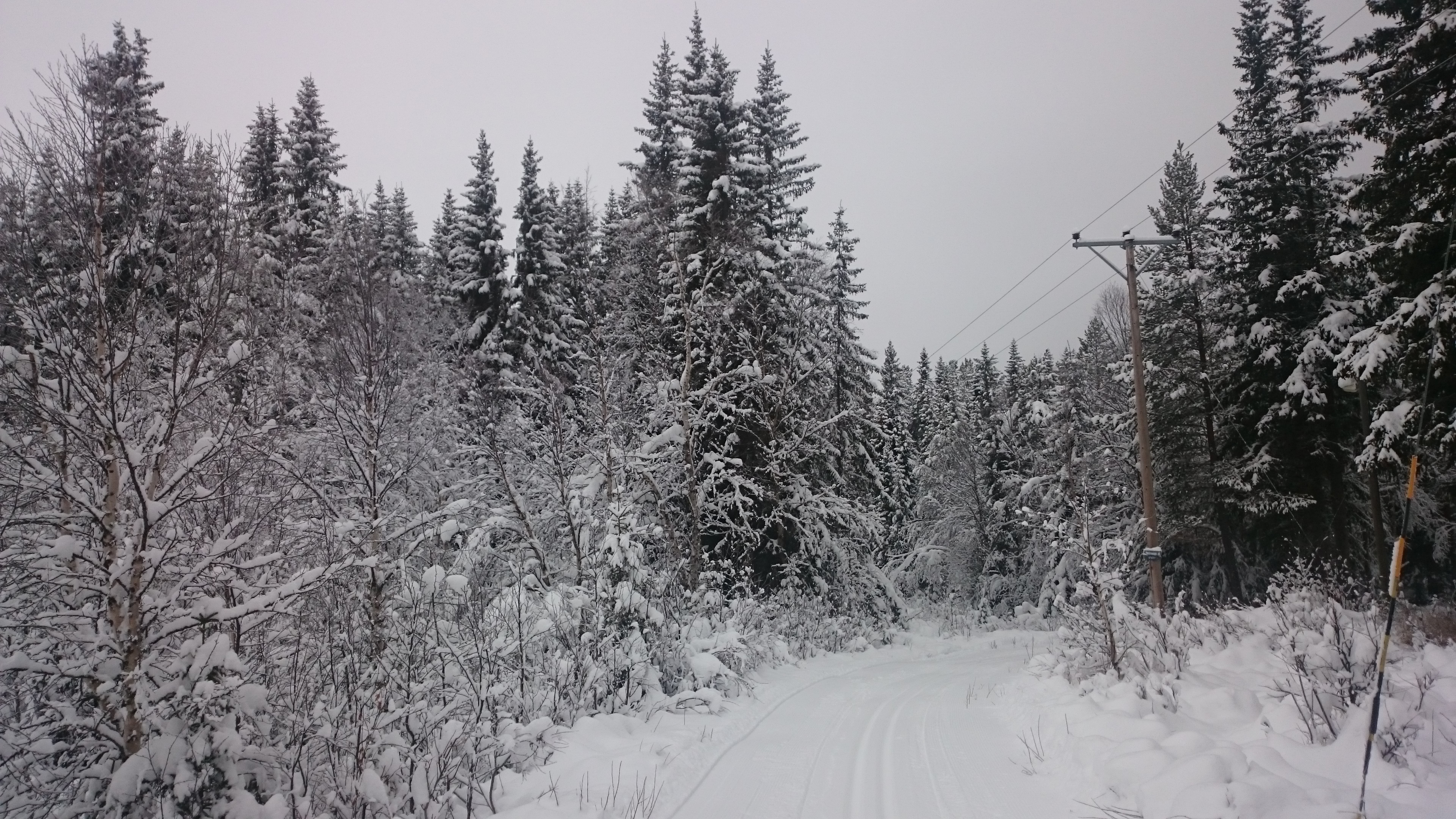 Det var en grå dag med lätt snöfall men fantastiskt vackert i skogen med mycket snö i träden.