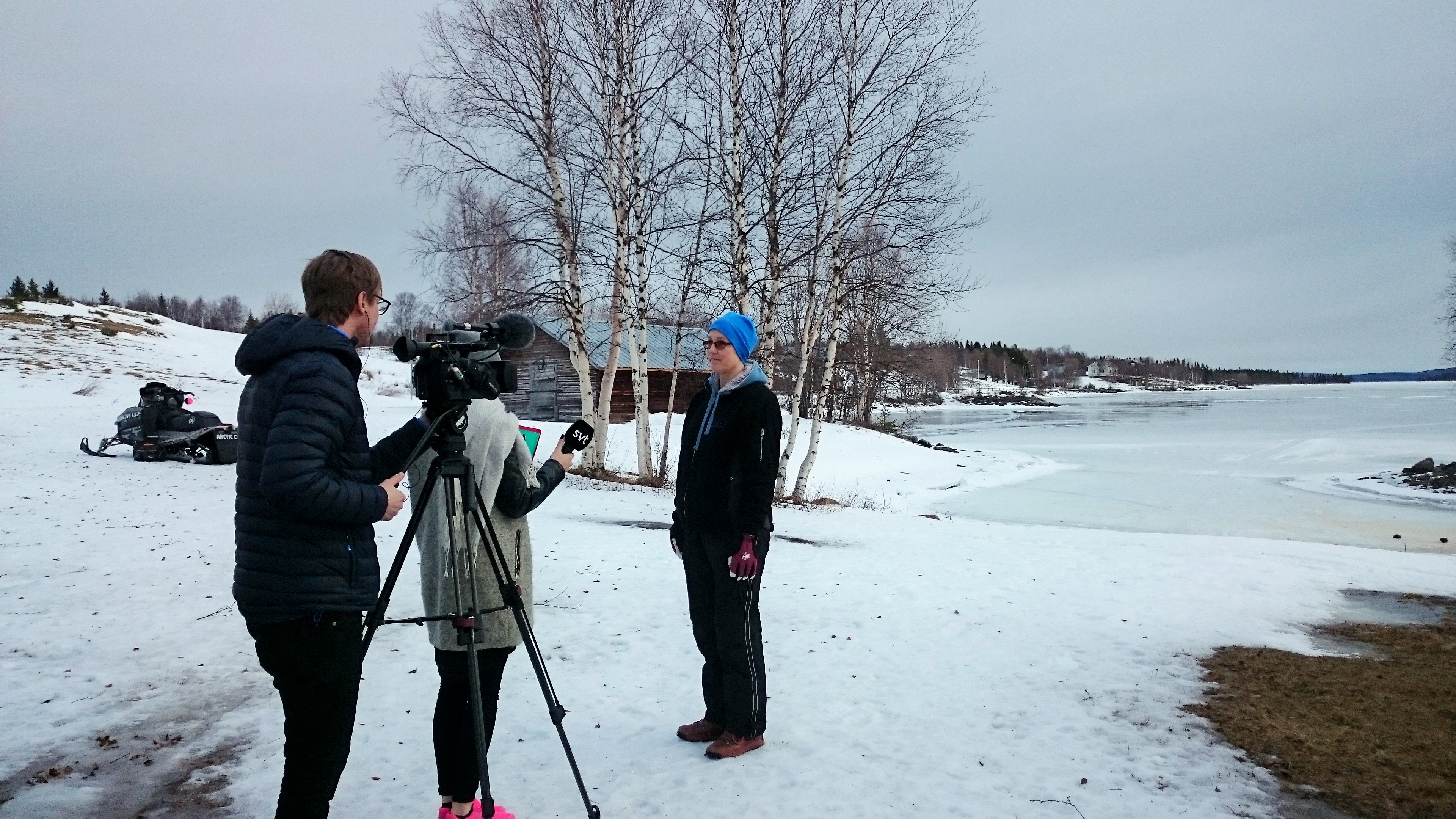 För en tid sedan hade vi besök av SVT Jämtland och vi var några som samlades i ”Störröset” vid Kyrktjärn. Vi kokade såklart kaffe över elden och det serverades goda smörgåsar.